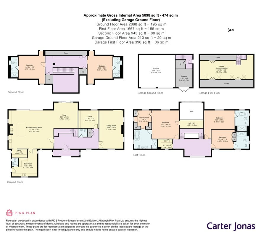 Upstairs, the bedrooms are arranged across two floors. The principal bedroom suite boasts a fitted dressing room, a full ensuite and the lovely feature of a gallery/sitting area over the family room, perfectly positioned to take in the rural views. The remaining four bedrooms are all generous doubles, each with stylishly appointed ensuites. A dedicated laundry room on the first floor complements the ground floor utility room for added convenience. Built with advanced technology and sustainability in mind, Priory House achieves impressive energy efficiency and benefits from a strong EPC rating, offering refined country living with modern performance.